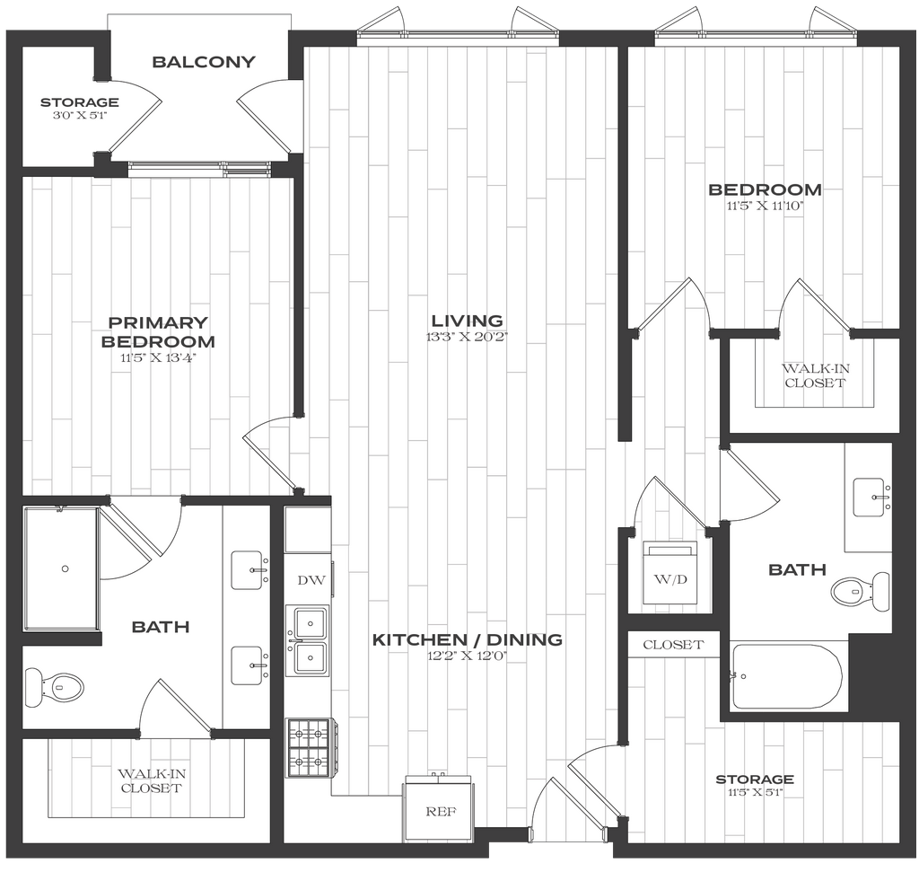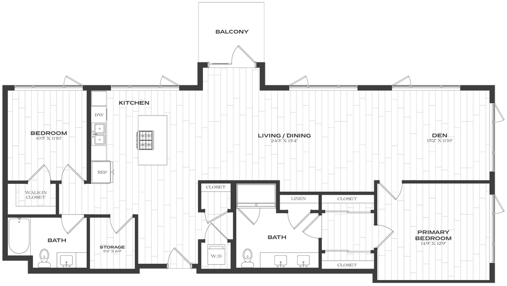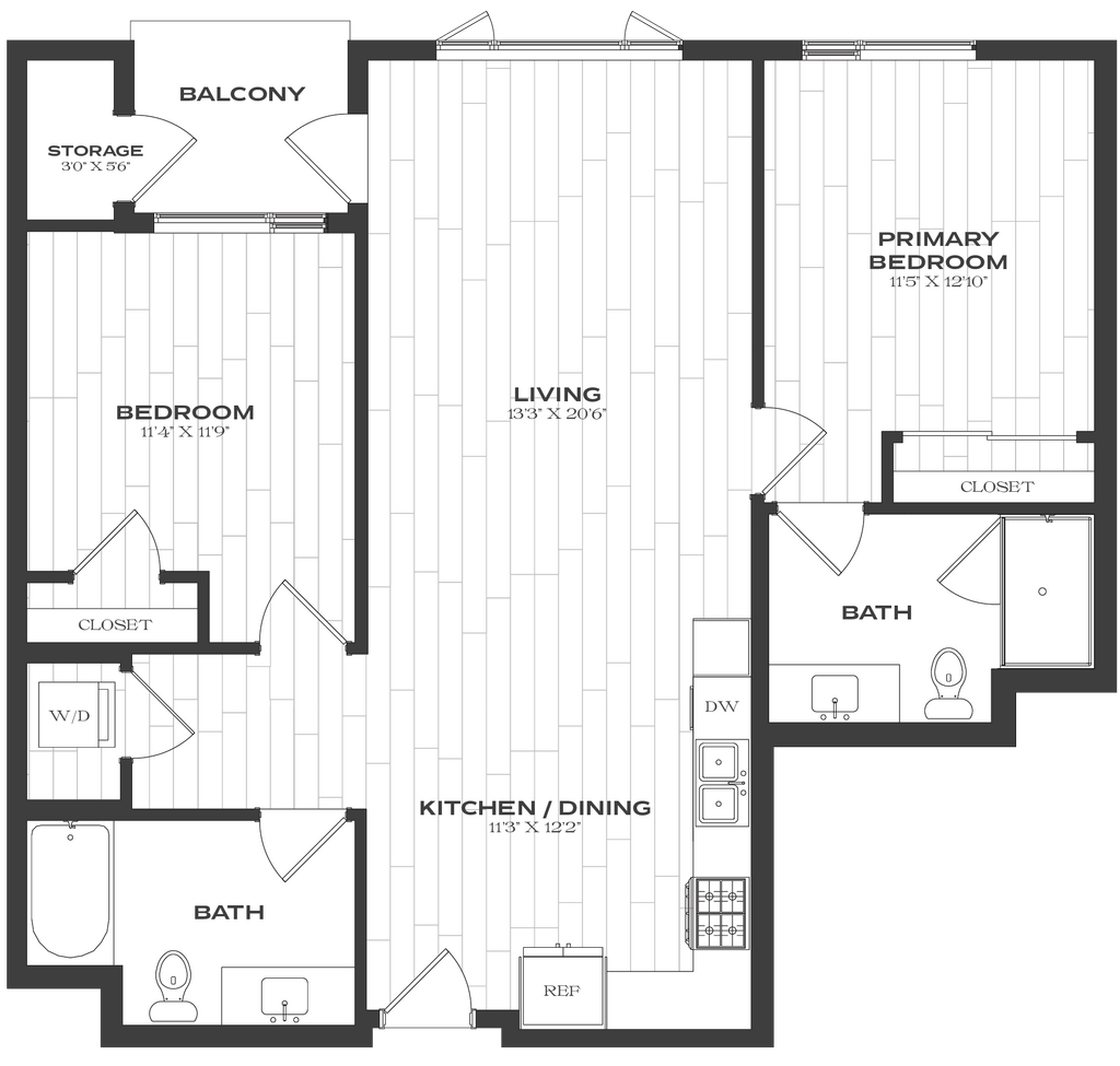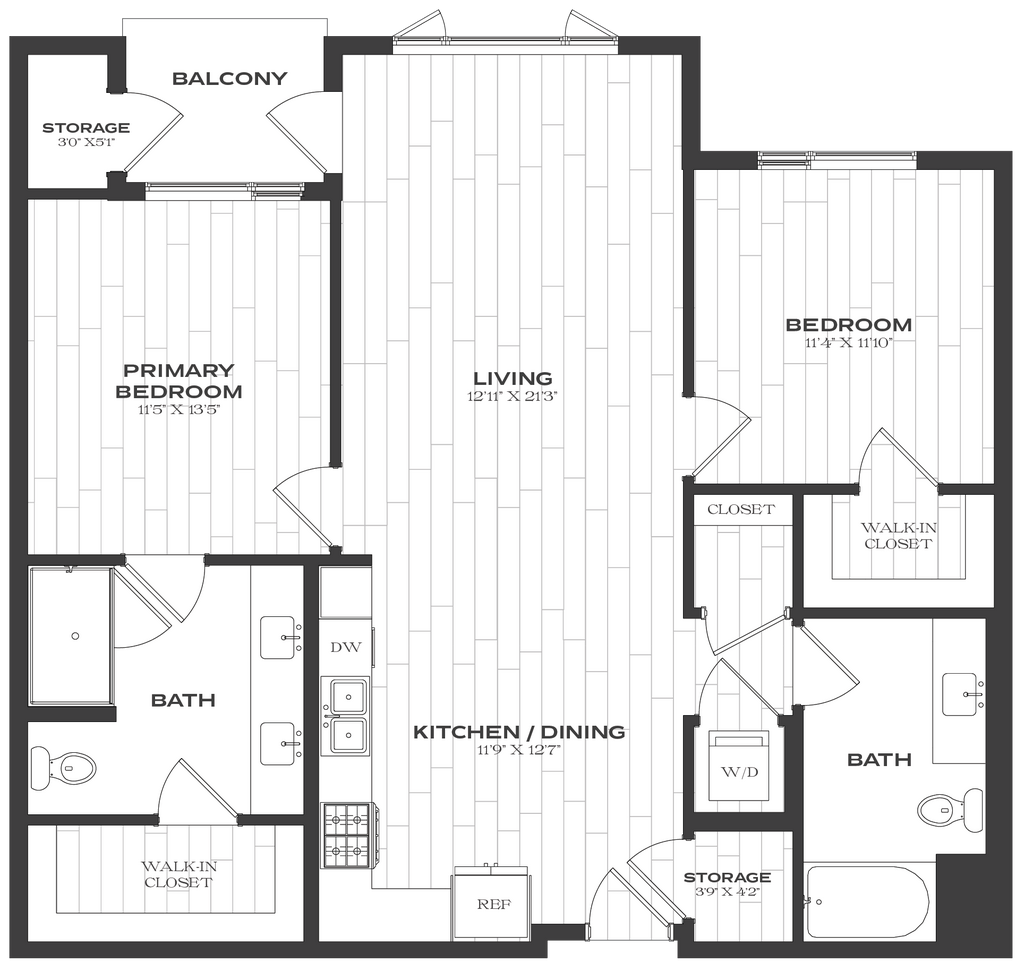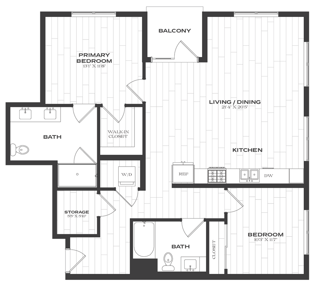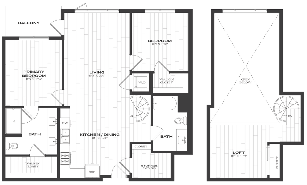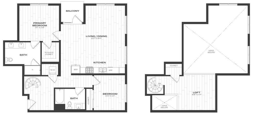 1 Dormitorio, 1 Baño, 843 pies²Disponible AhoraGalería del Modelo
