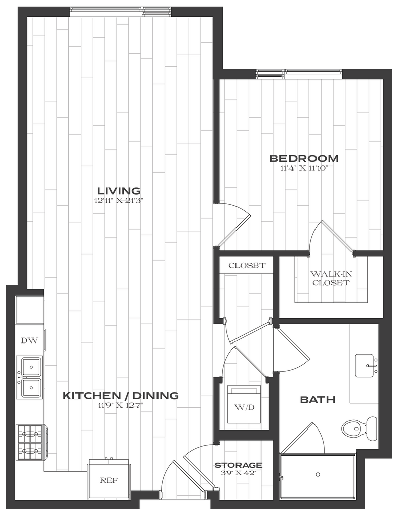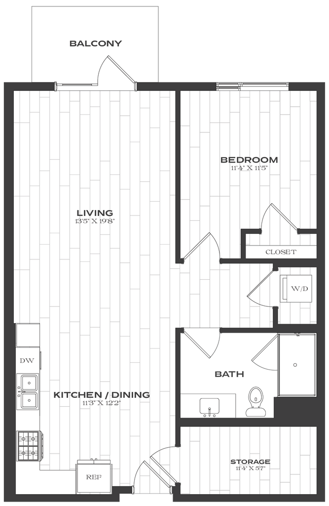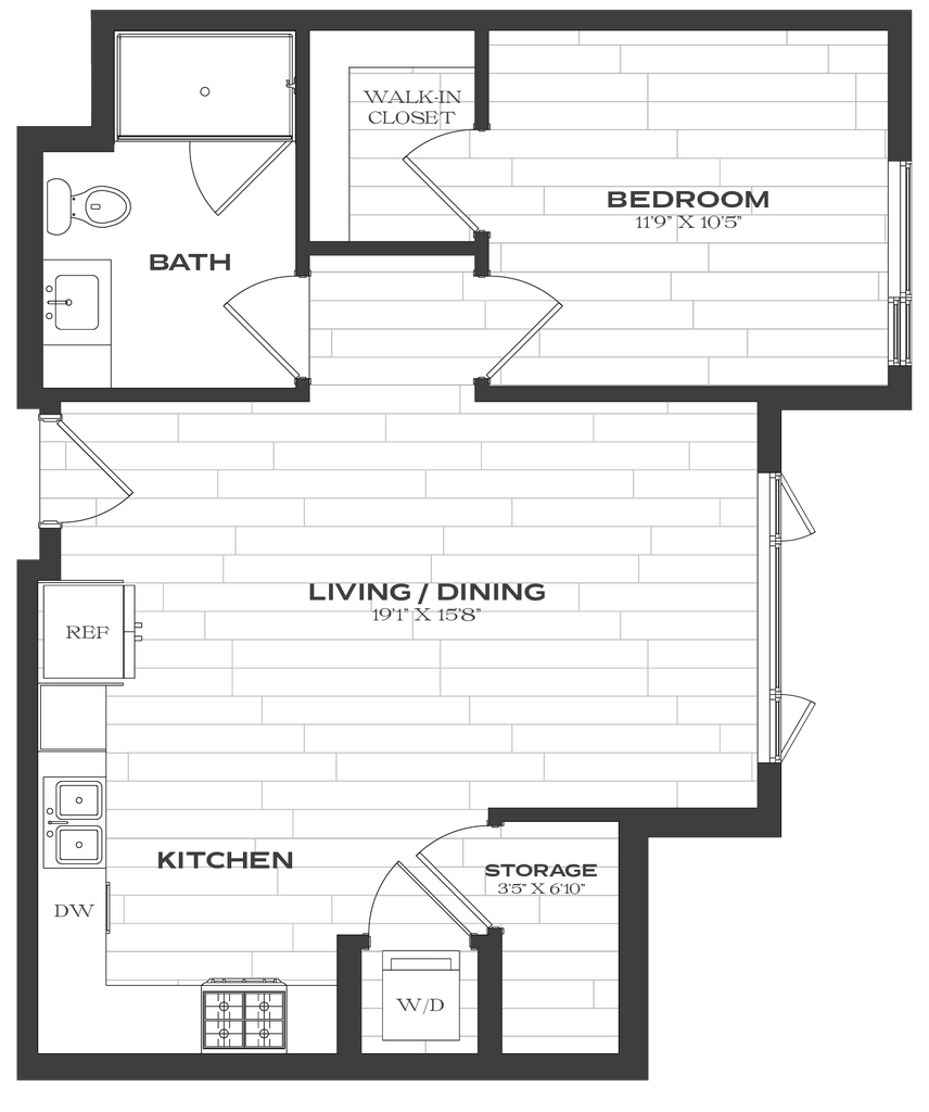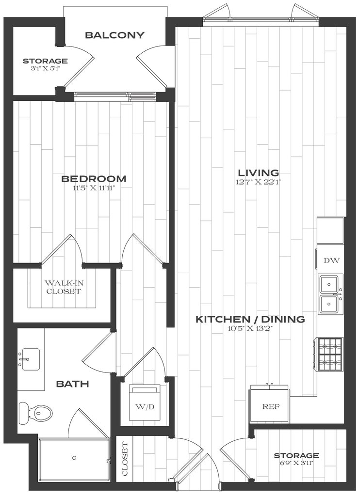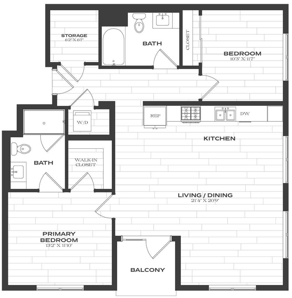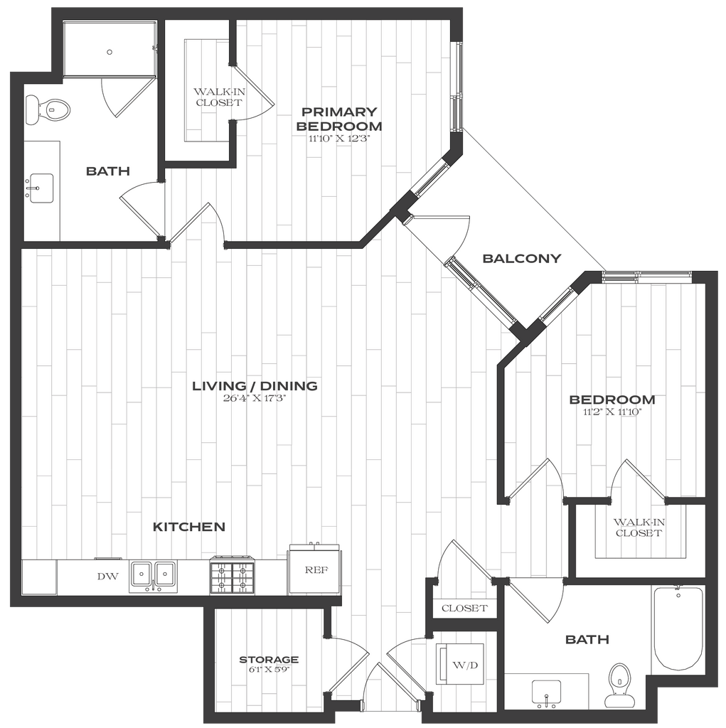 1 Dormitorio, 1 Baño, 702 pies²Disponible AhoraGalería del Modelo