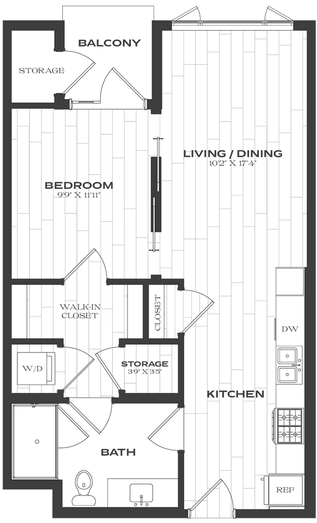 Estudio, 1 Baño, 536 pies²Disponible AhoraGalería del Modelo