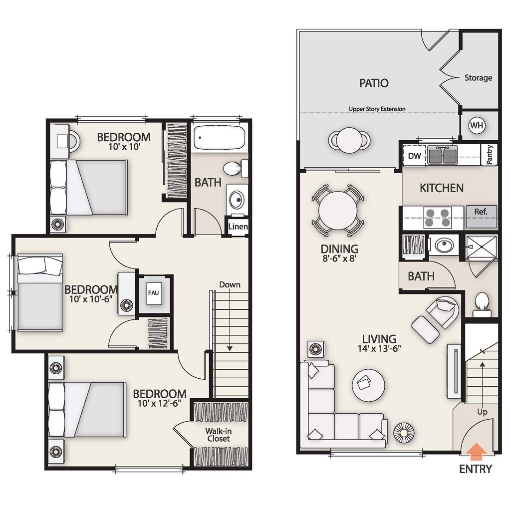 3 Dormitorios, 2 Baños, 1147 pies²Disponible Oct 23Galería del Modelo