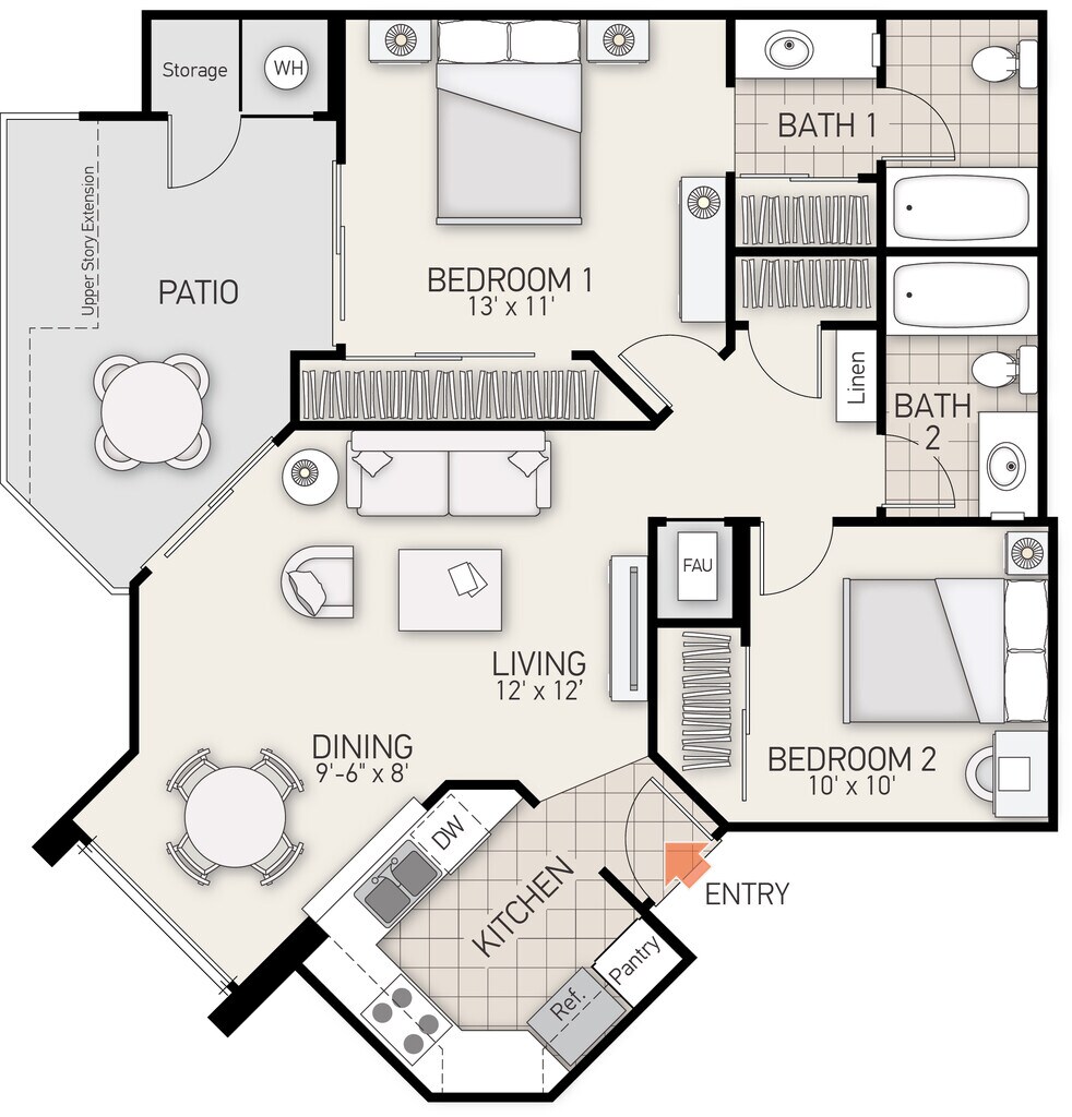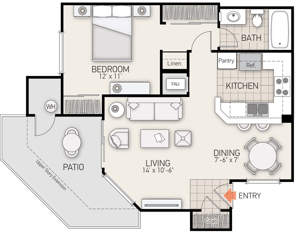 1 Dormitorio, 1 Baño, 748 pies²Disponible AhoraEl más grandeEsta opción tiene las unidades más grandes para este modeloGalería del Modelo