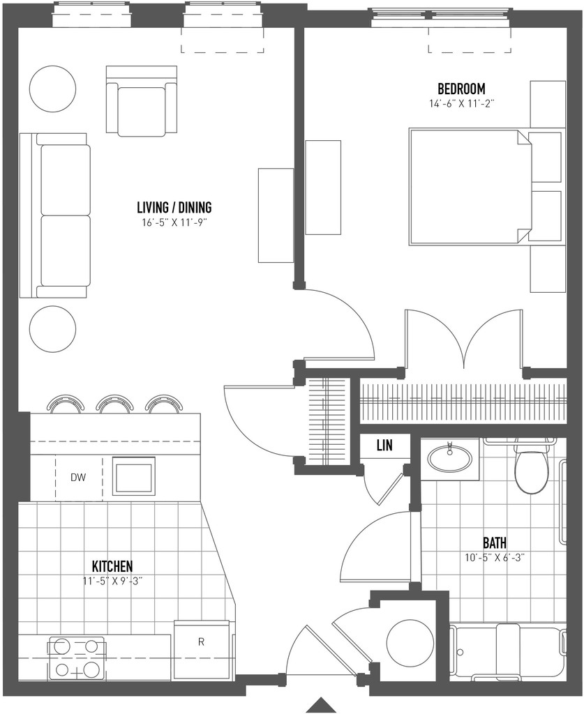 1 Dormitorio, 1 Baño, 691-822 pies²Galería del Modelo