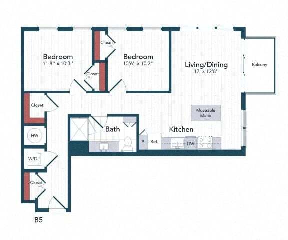 Modelo de apartamento: B3$2,5722 Dormitorios, 1 Baño, 887 sq ftDisponible Ahora![]()