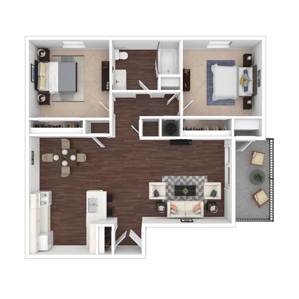 Modelo de apartamento: Floor Plan B2 Dormitorios, 1 Baño, 844 sq ftDisponible Ahora![]()