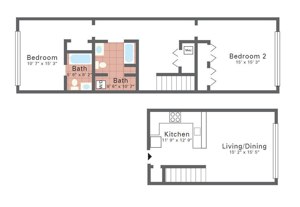 1 Dormitorio, 1 Baño, 1100 pies²Disponible AhoraGalería del Modelo