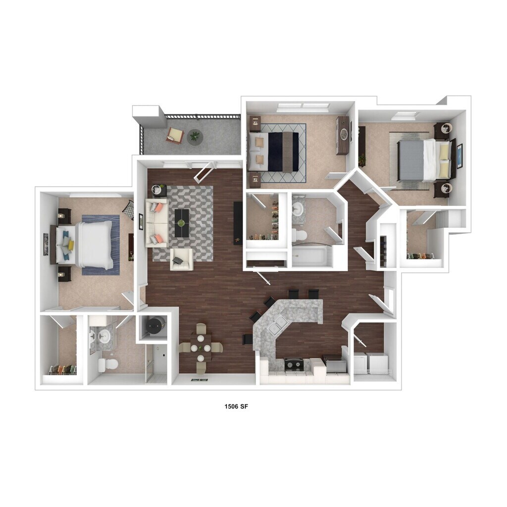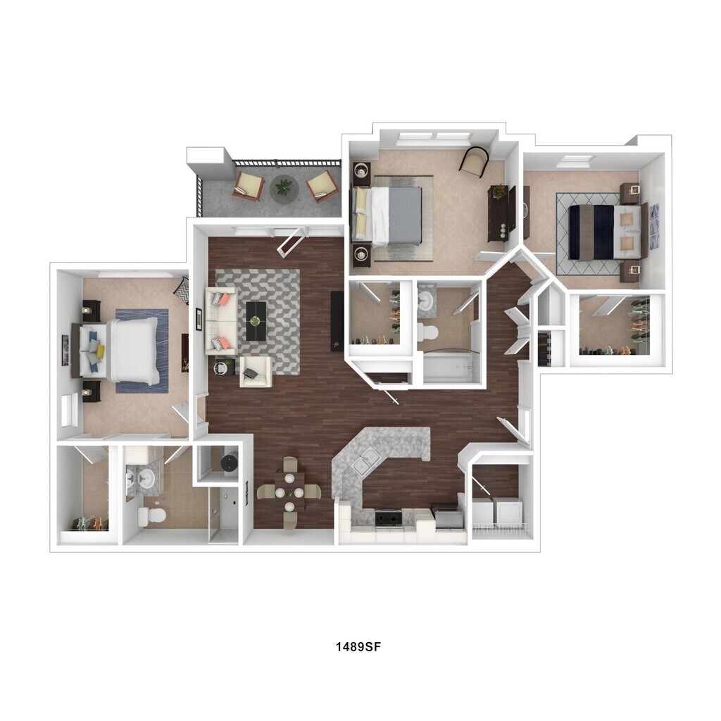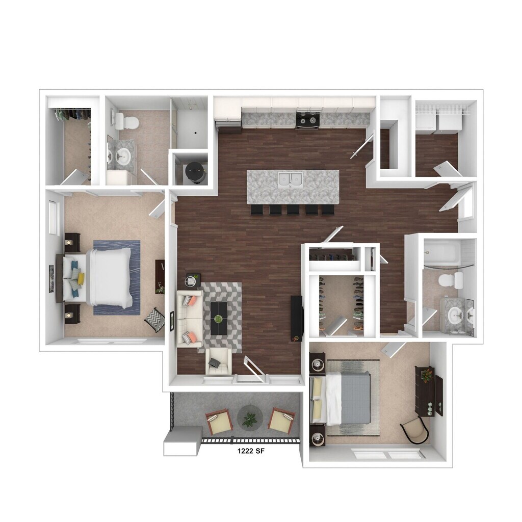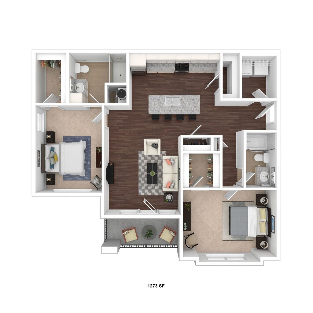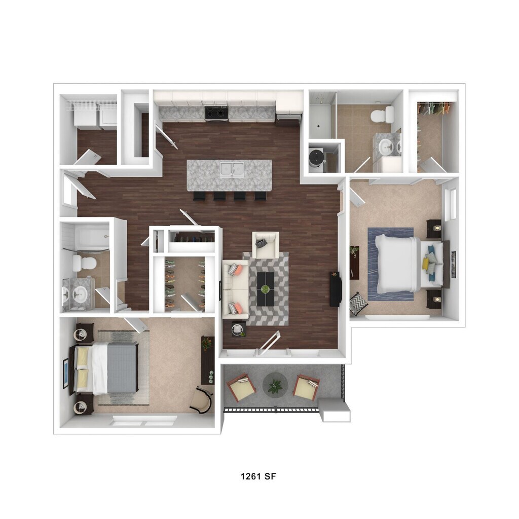 2 Dormitorios, 2 Baños, 1261 pies²Disponible January 10, 2026El más grandeEsta opción tiene las unidades más grandes para este modeloGalería del Modelo