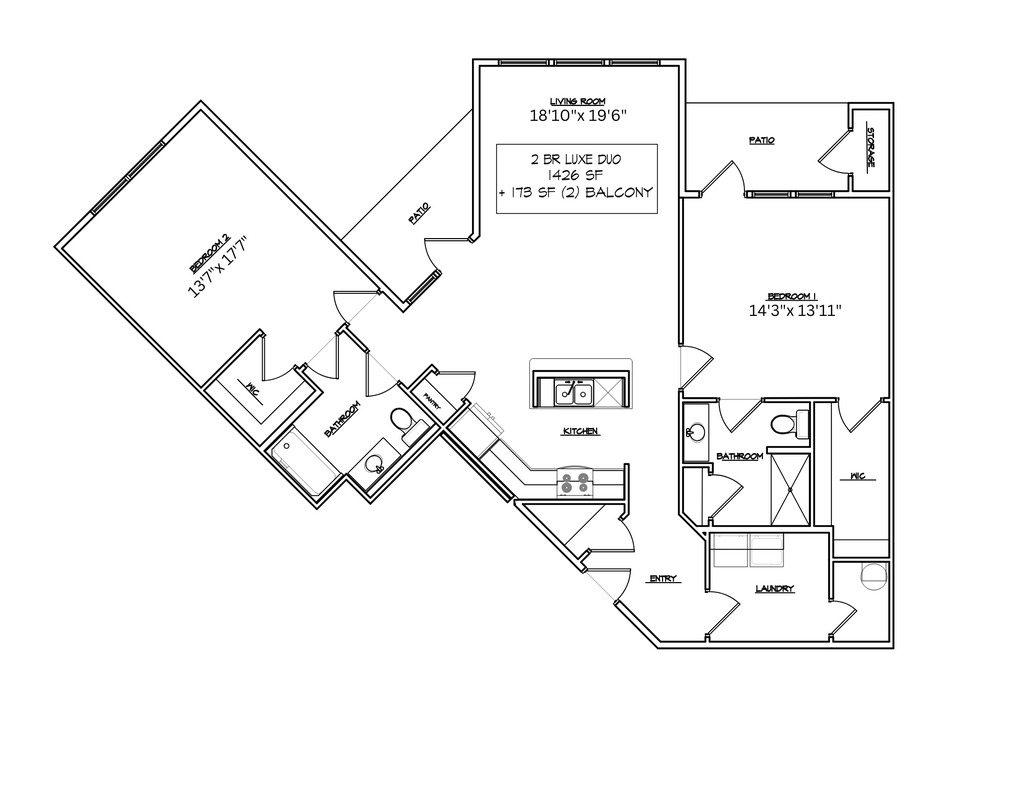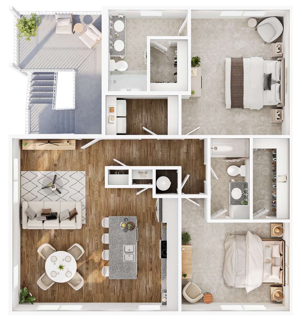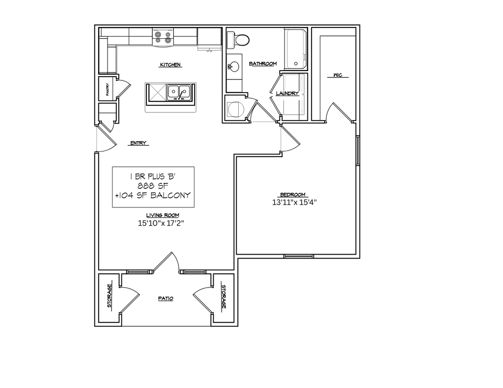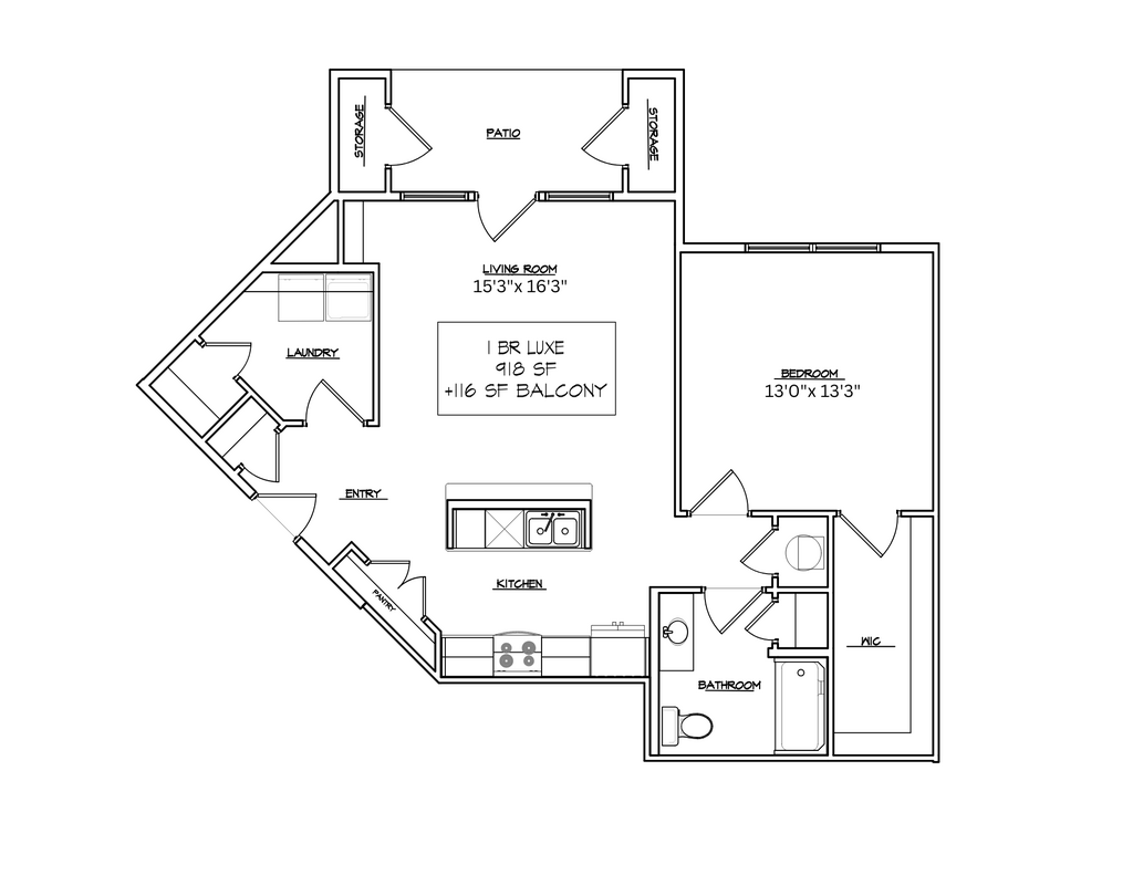 1 Dormitorio, 1 Baño, 918 pies²Disponible AhoraEl más grandeEsta opción tiene las unidades más grandes para este modeloGalería del Modelo