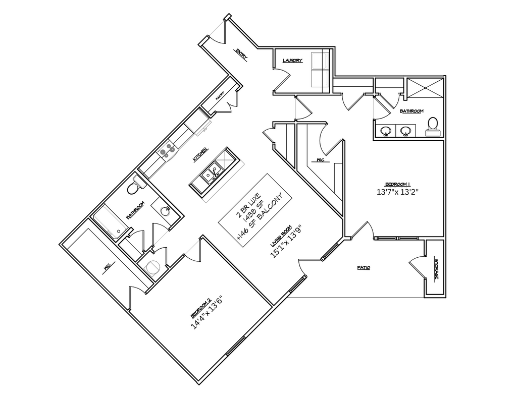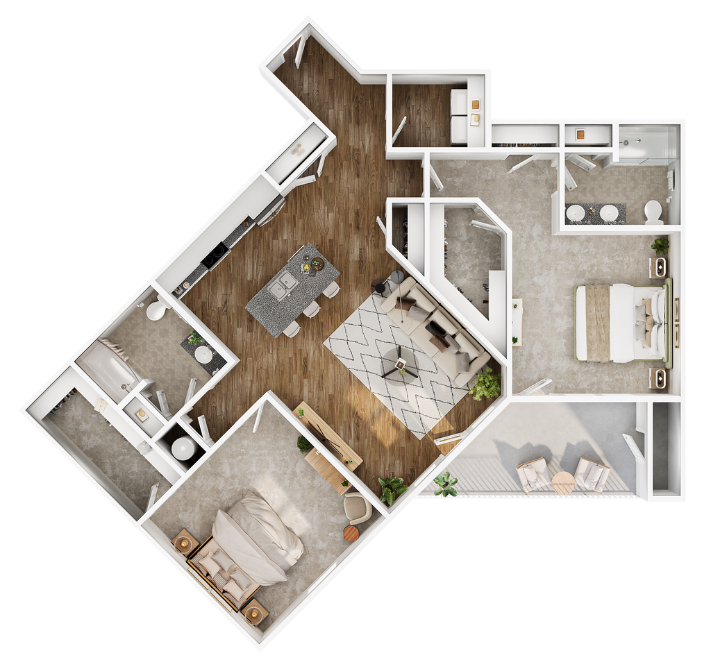 Modelo de apartamento: 1 Bedroom LuxeDesde $1,3491 Dormitorio, 1 Baño, 918 sq ftDisponible AhoraPlanosFotos![]()