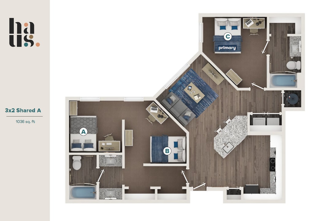 Modelo de apartamento: 3x2 SharedDesde $1,0293 Dormitorios, 2 Baños, 1036 sq ftDisponible Ahora3x2 Shared - Plano 1 Unidad de apartamento: PrimaryModelo de apartamento: 3x2 Shared$1,4993 Dormitorios, 2 Baños, 1036 sq ftDisponible AhoraUnidad de apartamento: PrimaryModelo de apartamento: 3x2 Shared$1,4993 Dormitorios, 2 Baños, 1036 sq ftDisponible August 14, 2026Unidad de apartamento: StandardModelo de apartamento: 3x2 Shared$1,0293 Dormitorios, 2 Baños, 1036 sq ftDisponible August 14, 2026Plano: 3x3