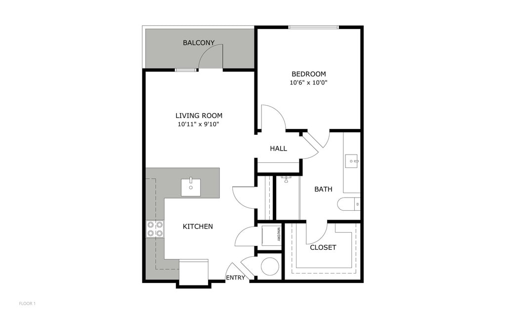 Modelo de apartamento: A1$1,1251 Dormitorio, 1 Baño, 647 sq ftNo Disponible![]()