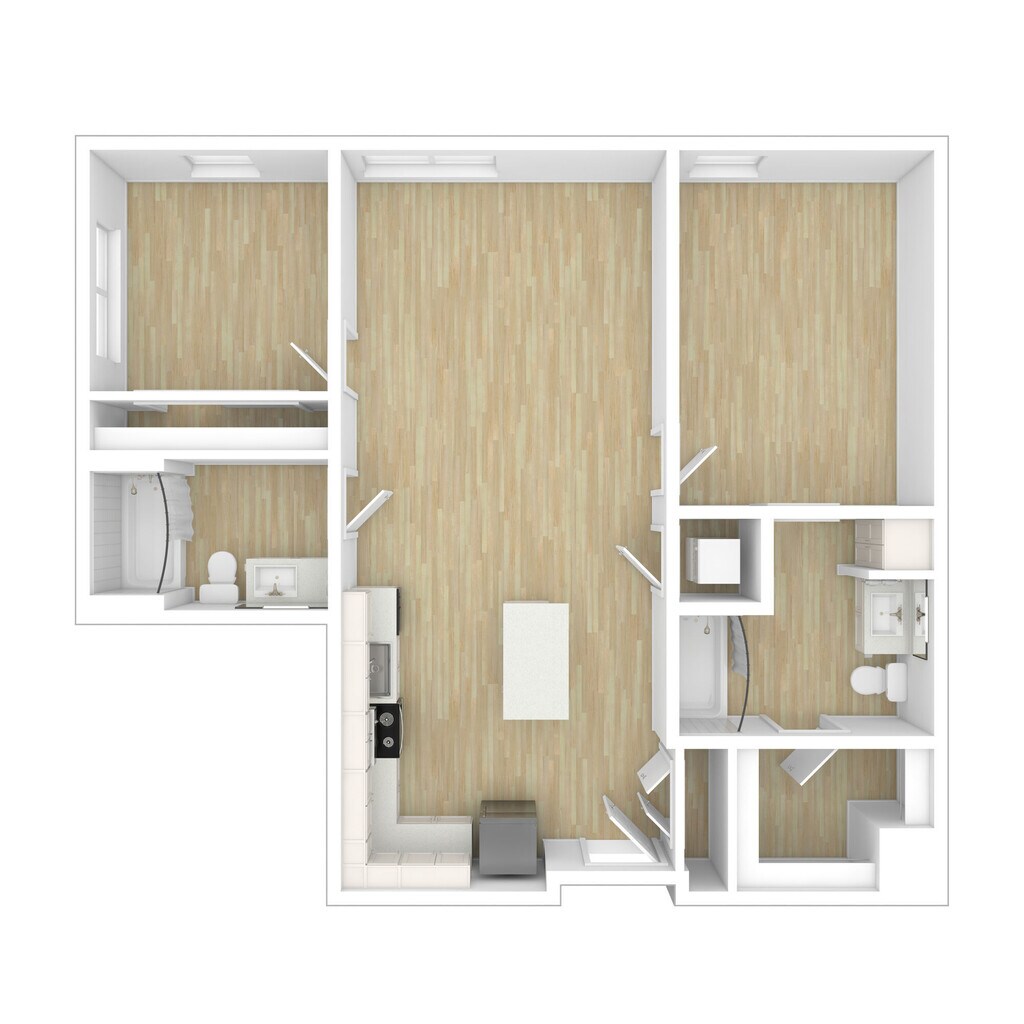 Modelo de apartamento: B5Desde $3,5102 Dormitorios, 2 Baños, 1109 sq ftDisponible Ahora![]()