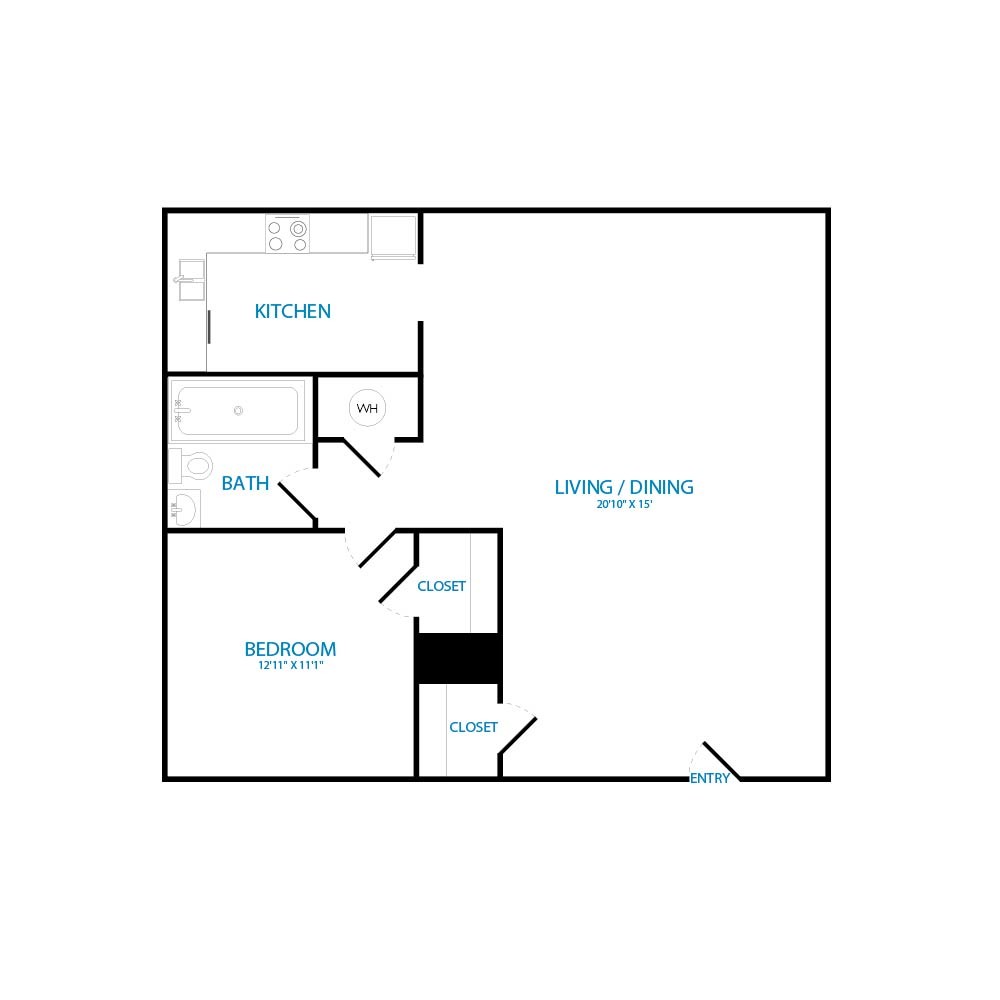 Modelo de apartamento: One Bedroom A1 Dormitorio, 1 Baño, 589 sq ftDisponible Ahora![]()