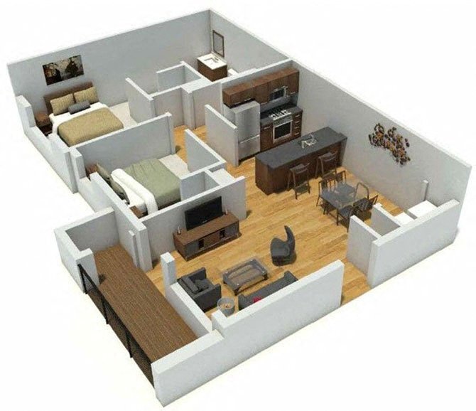 2 Dormitorios, 2 Baños, 886 pies²Galería del Modelo