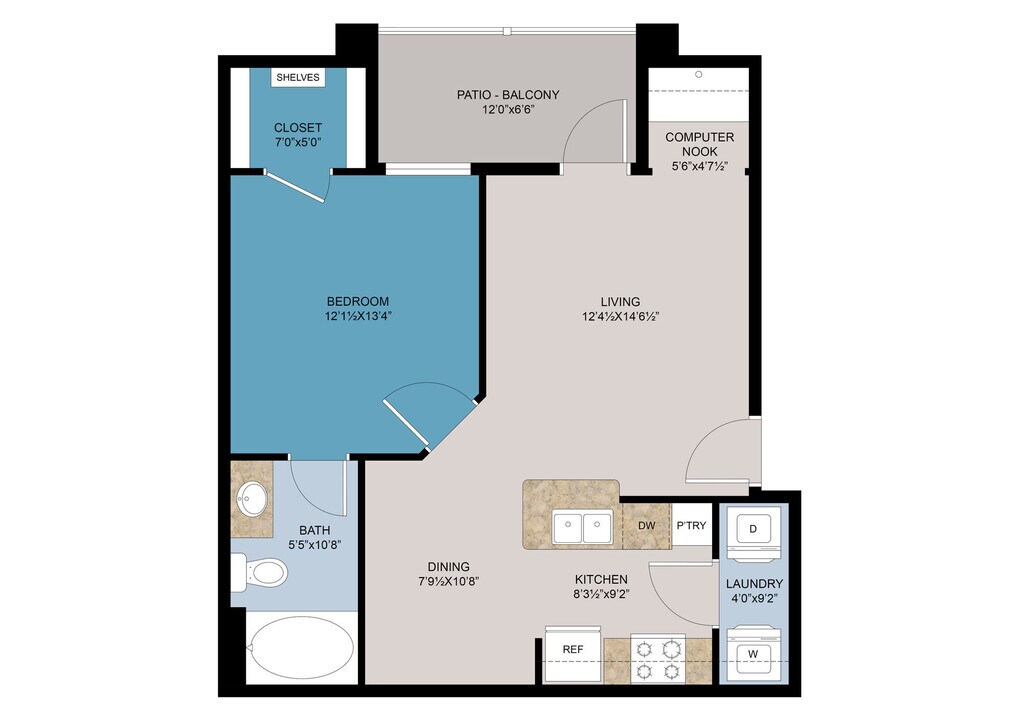 Modelo de apartamento: Barker$1,1341 Dormitorio, 1 Baño, 579 sq ftNo Disponible![]()