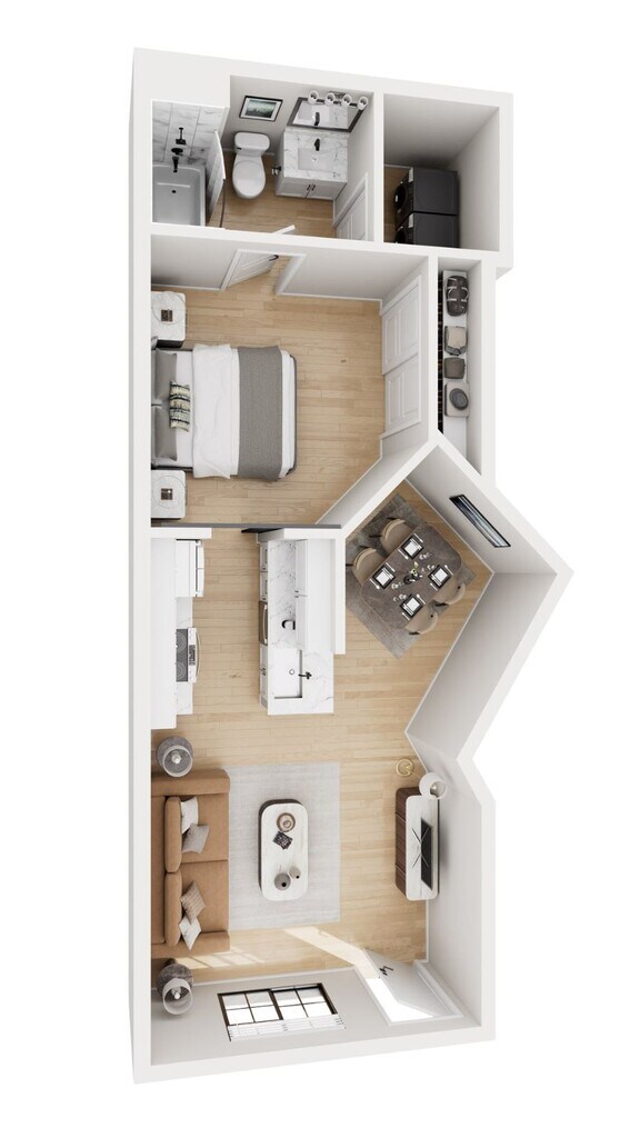 Encanto 1x1 - Plano 1 Unidad de apartamento: 111Modelo de apartamento: Encanto 1x1$1,4551 Dormitorio, 1 Baño, 564 sq ftDisponible AhoraSteele 1x1