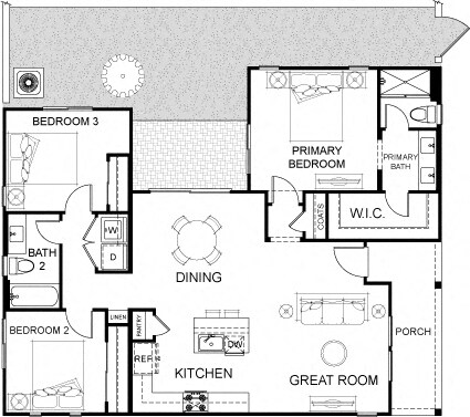 Modelo de apartamento: Plan 9Desde $2,1951 Dormitorio, 1 Baño, 852 sq ftDisponible Ahora![]()
