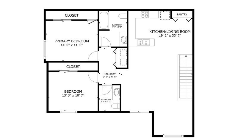 2 Bedroom 2 Bath Upper