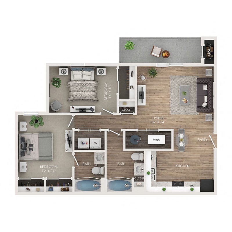 Modelo de apartamento: BTHp - DerbyDesde $1,3502 Dormitorios, 1.5 Baños, 1268 sq ftDisponible Ahora![]()