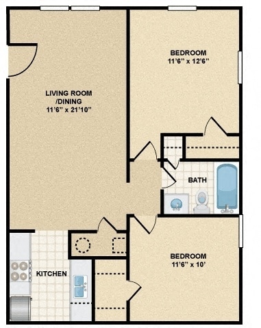 Modelo de apartamento: CanterburyLlame para Precios1 Dormitorio, 1 Baño, 486 sq ftNo Disponible![]()