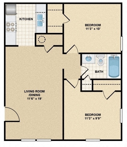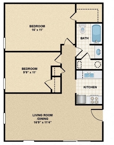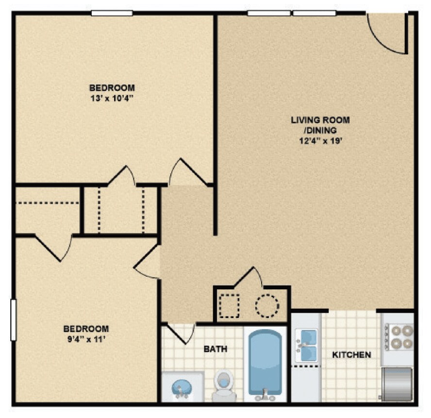 2 Dormitorios, 1 Baño, 690 pies²Disponible AhoraEl más baratoEsta opción tiene los precios más bajos para este modeloGalería del Modelo