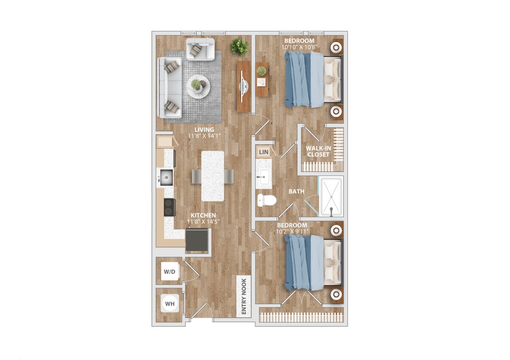 Hawkins Press ofrece apartamentos de Estudio a 3 Dormitorios desde $1,569 con 566–1,348 pies cuadrados. Aquí está el precio actual y la disponibilidad: