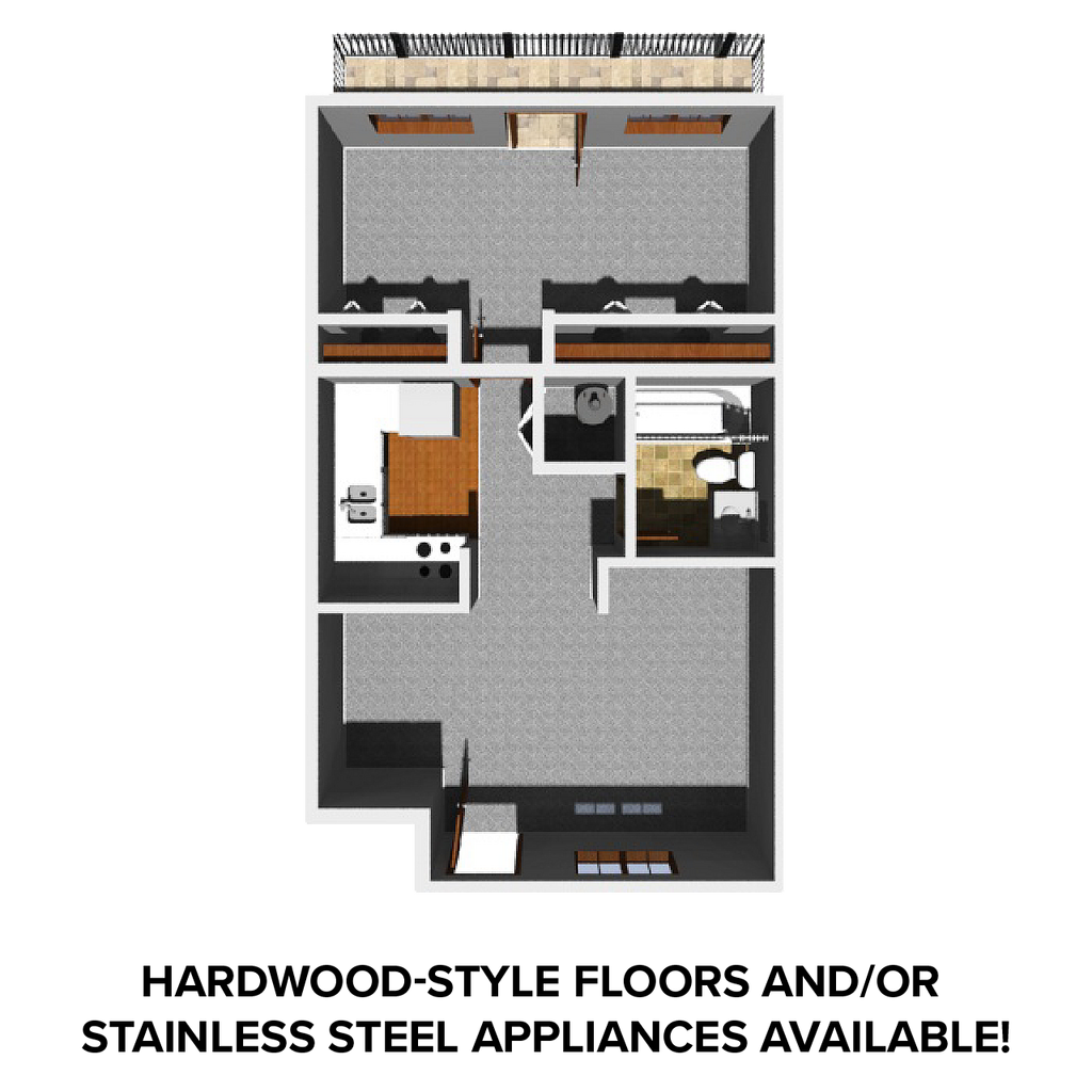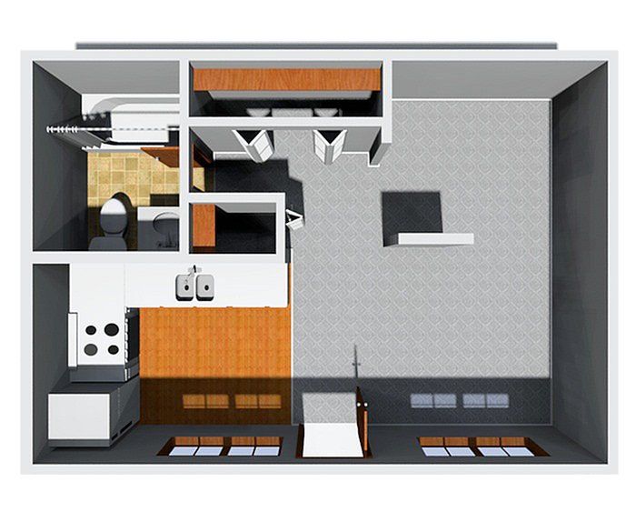 1 Dormitorio, 1 Baño, 200 pies²Disponible August 15, 2026Galería del Modelo