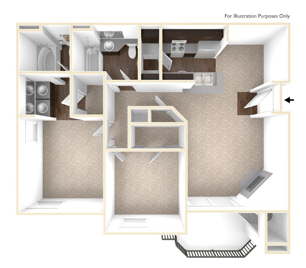 Modelo de apartamento: BalticDesde $2,5502 Dormitorios, 2 Baños, 1136 sq ftDisponible Ahora![]()