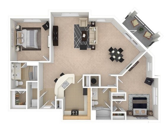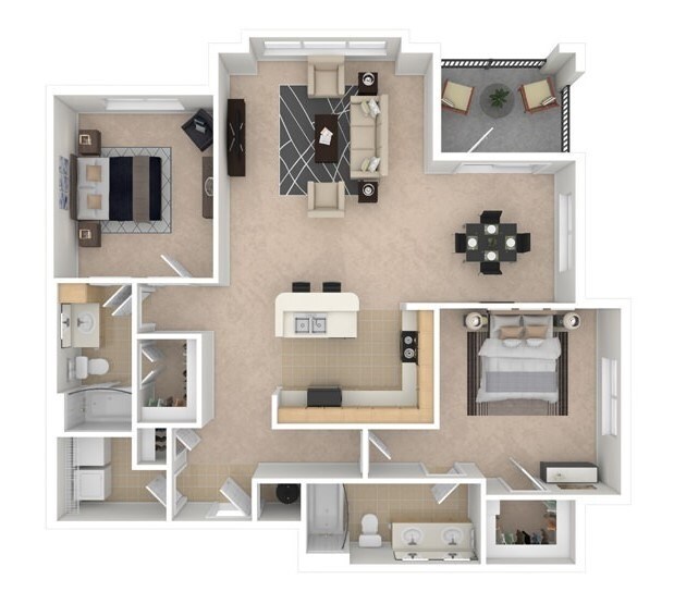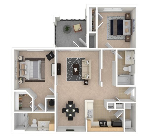 1 Dormitorio, 1 Baño, 750 pies²Disponible AhoraGalería del Modelo