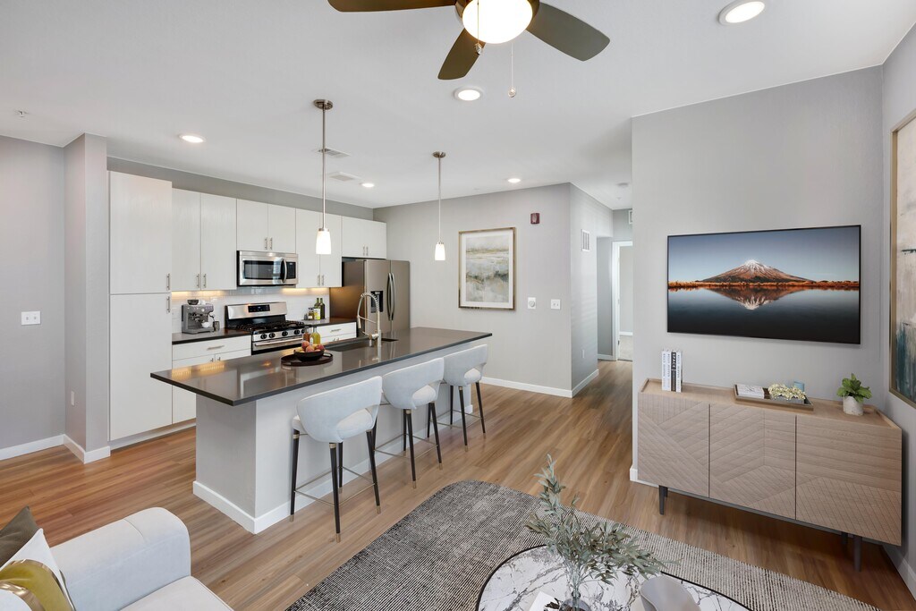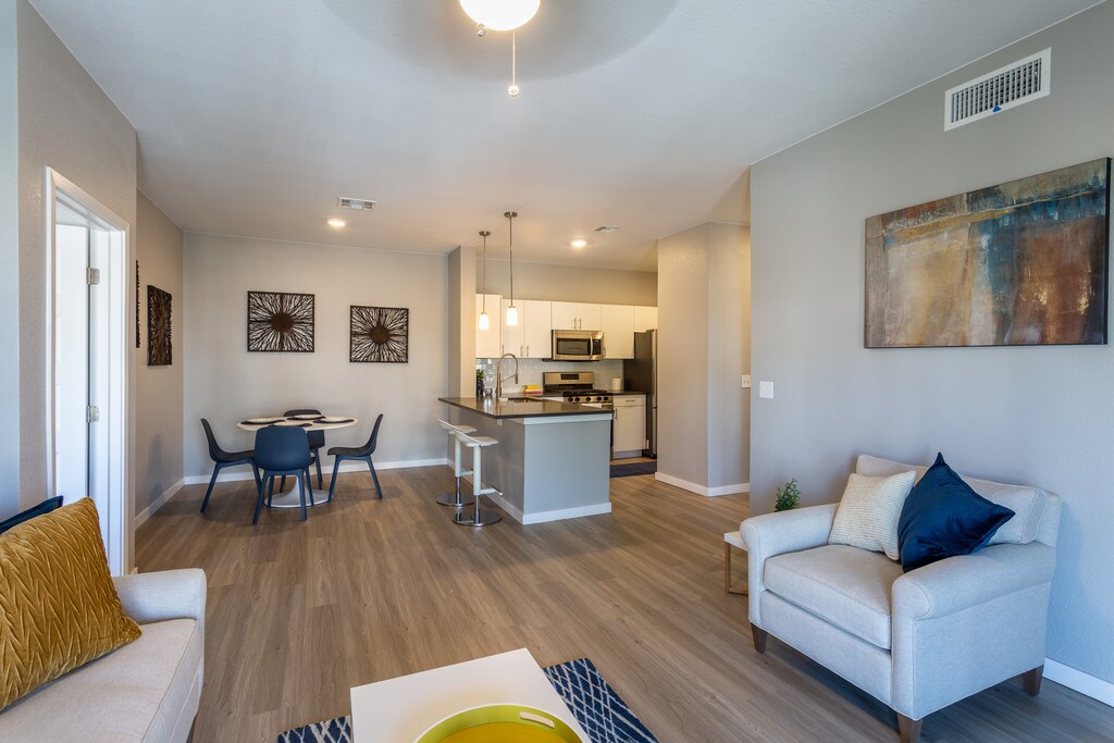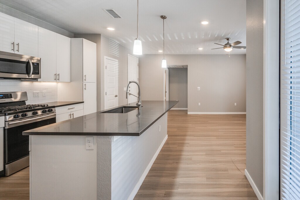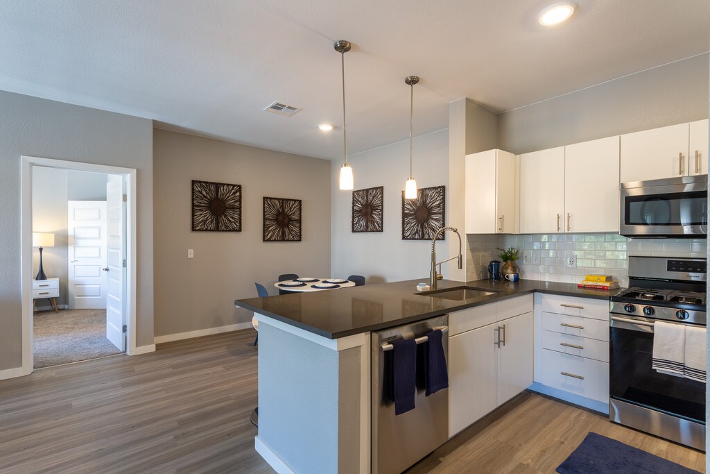 Celebra cada día con elegantes características como una cocina gourmet de chef perfecta para el entretenimiento. Imagina a tus amigos y familiares alrededor de tu isla de cocina estilo restaurante, cocina la cena en tu estufa a gas a medida que las luces colgantes reflejan tus electrodomésticos de acero inoxidable. Luego, trae a tus invitados a reunirse en tu patio o balcón privado, y brindar por otro día bien vivido. Más allá de la tentadora cocina, te encantarán las características únicas como elegantes pisos estilo madera, vestidores grandes, y una ducha con estilo de centro turístico. Fuera de las paredes de tu apartamento, nuestro vibrante complejo estilo jardín actúa como una opulenta extensión para tu espacio de estar, donde cada día es mejor que el anterior. Sumerge tus pies en la reluciente piscina, relájate con una bebida fría en el área de pícnic con brasero y luego llama a tus amigos y familia y diles que finalmente estás en casa.