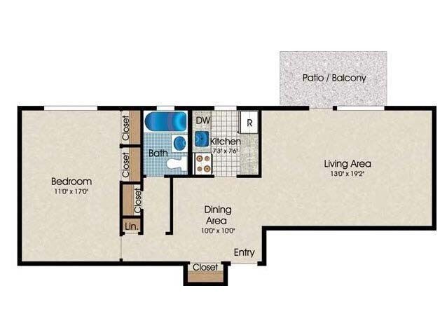 Modelo de apartamento: A02Desde $2,3001 Dormitorio, 1 Baño, 615 sq ftDisponible Ahora![]()
