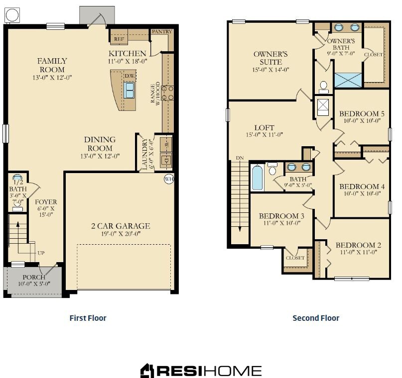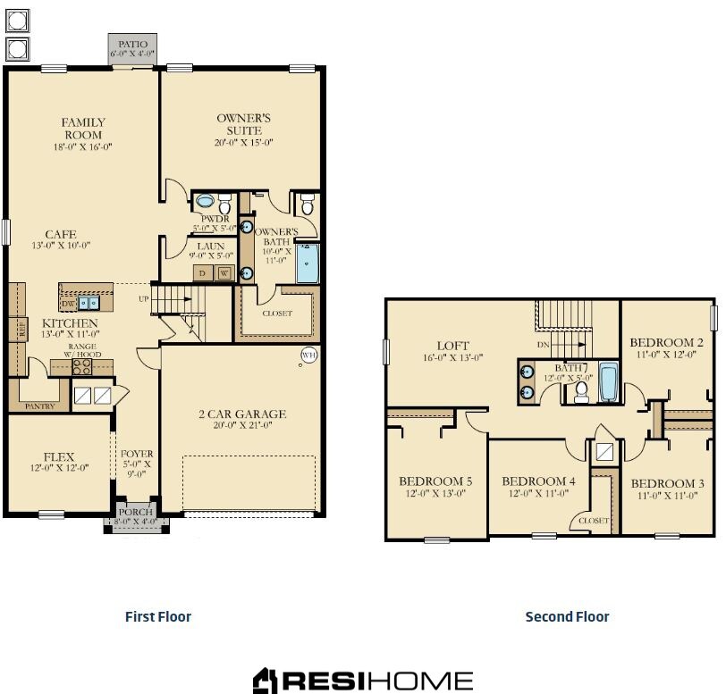 5 Dormitorios, 2.5 Baños, 2896 pies²El más grandeEsta opción tiene las unidades más grandes para este modeloGalería del Modelo