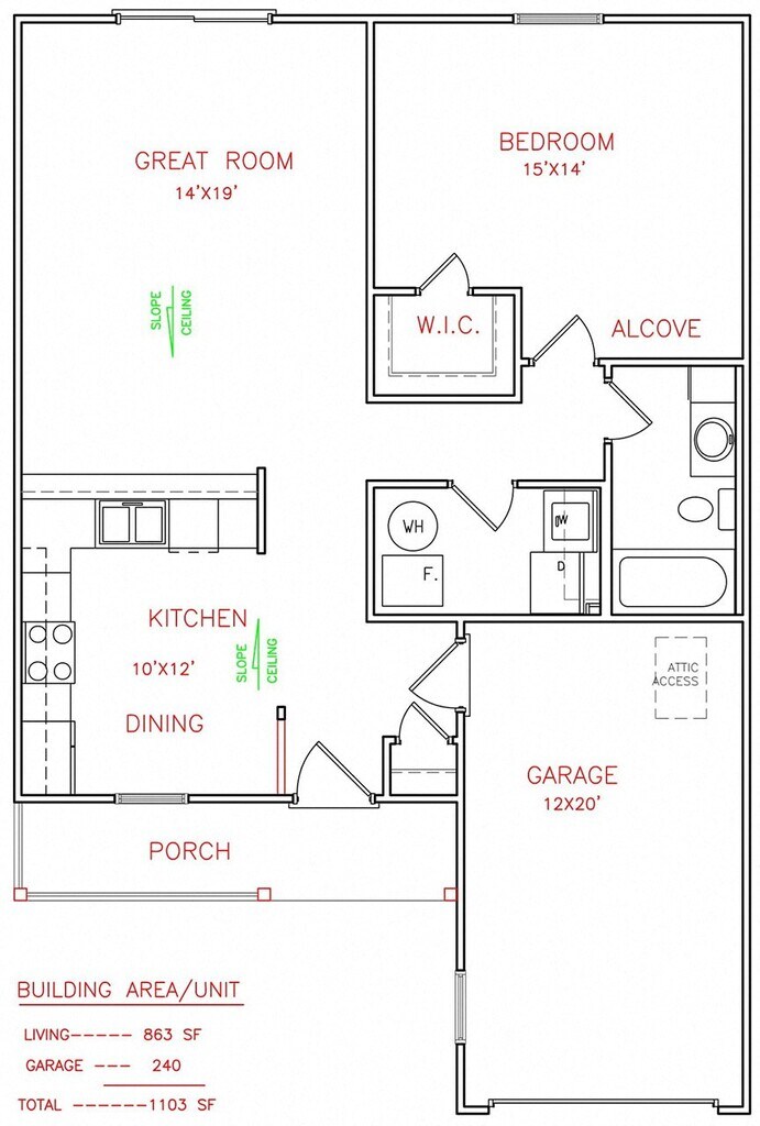 1 Dormitorio, 1 Baño, 720 pies²Galería del Modelo
