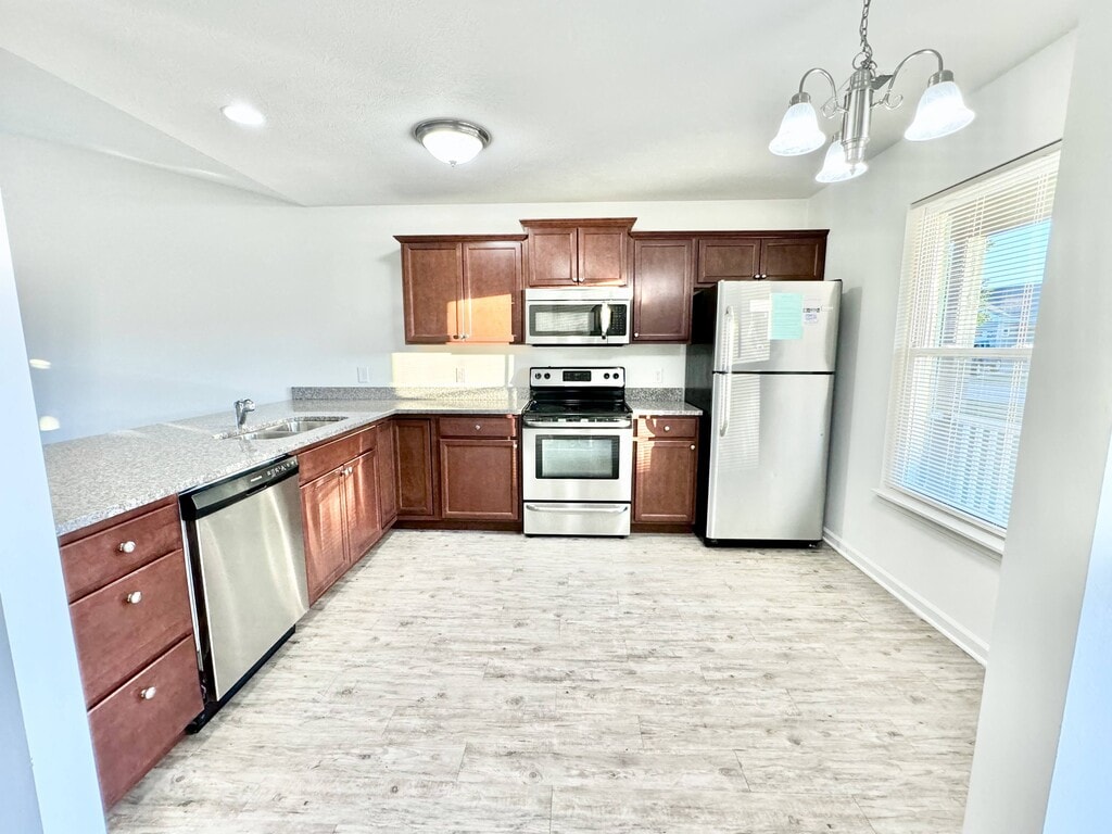 - Electrodomésticos de acero inoxidable (piso de arce o sicomoro)