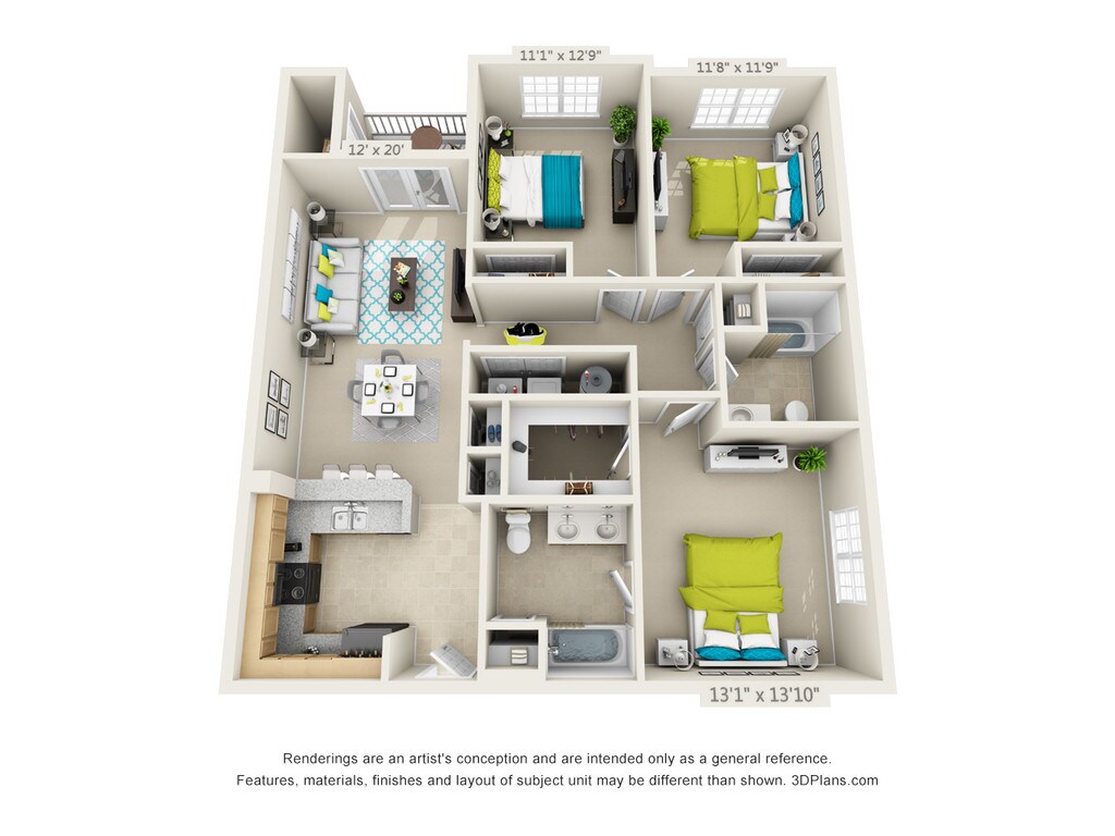 1 Dormitorio, 1 Baño, 850 pies²Disponible AhoraGalería del Modelo