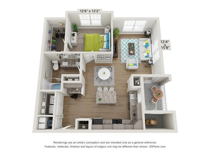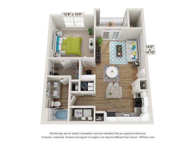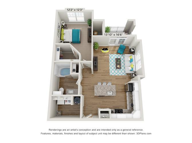 1 Dormitorio, 1 Baño, 859 pies²Disponible AhoraGalería del Modelo