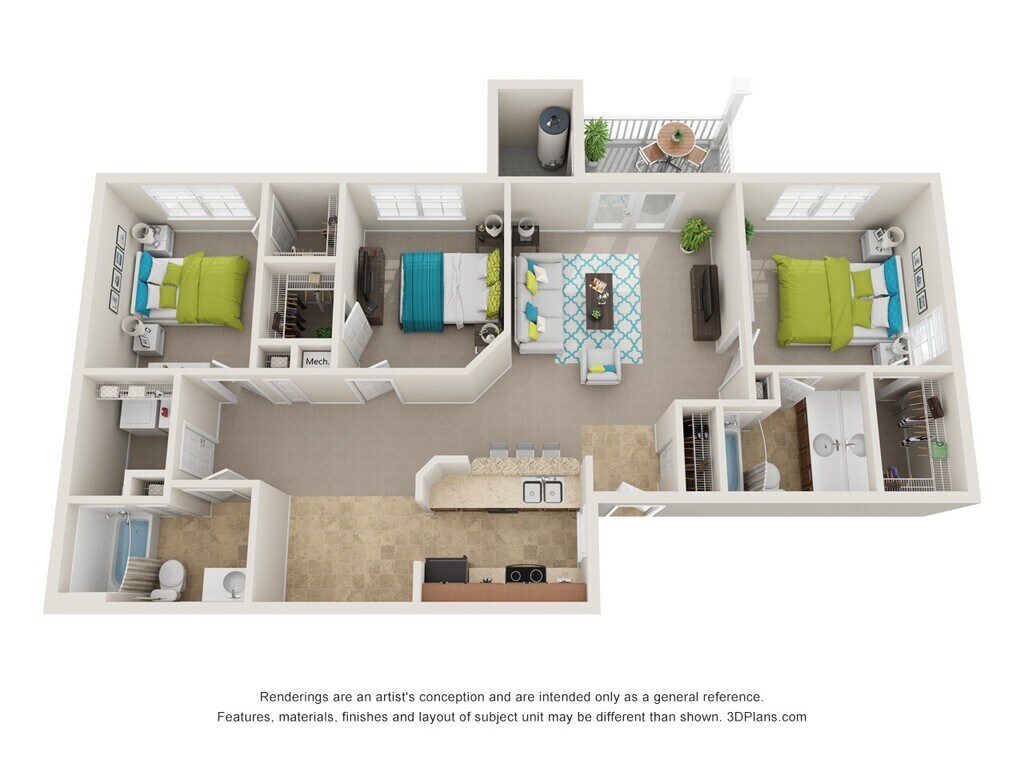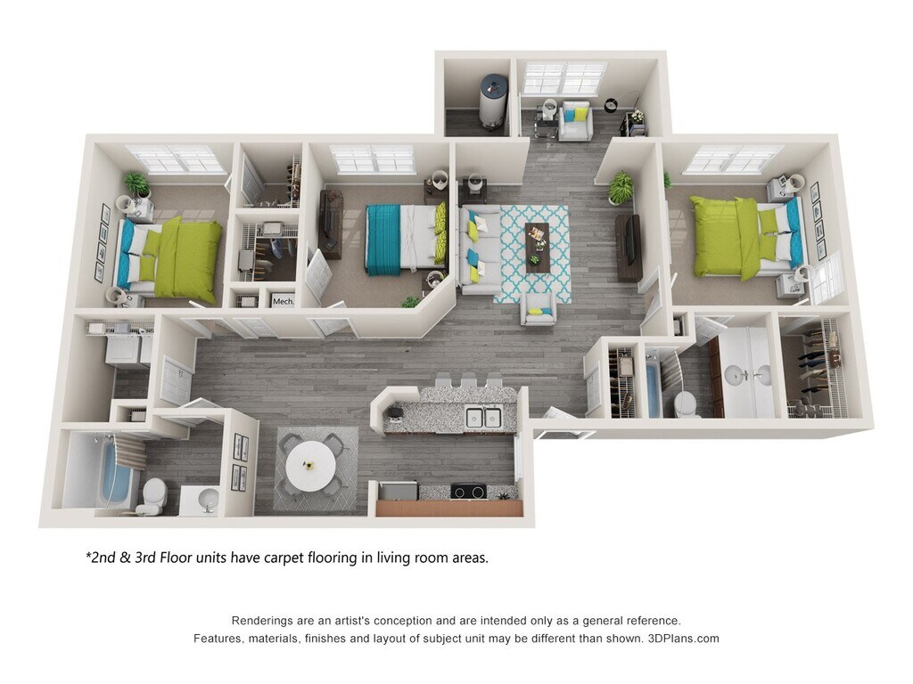 Modelo de apartamento: Palm LookoutLlame para Precios1 Dormitorio, 1 Baño, 801 sq ftNo Disponible![]()