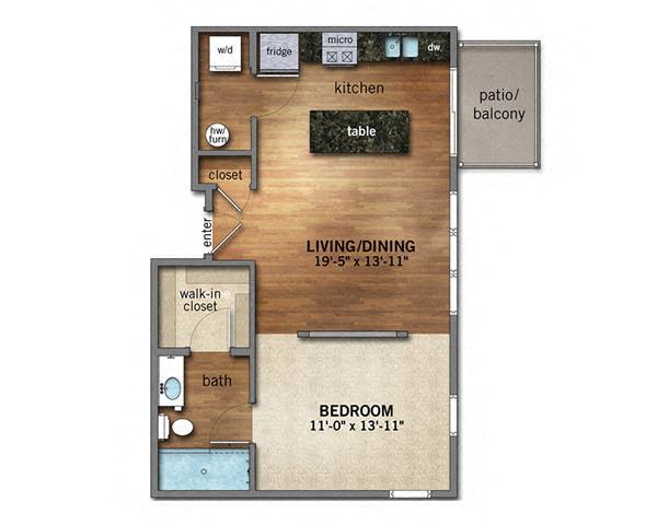 Modelo de apartamento: QuartersDesde $1,5031 Dormitorio, 1 Baño, 748 sq ftDisponible Ahora![]()