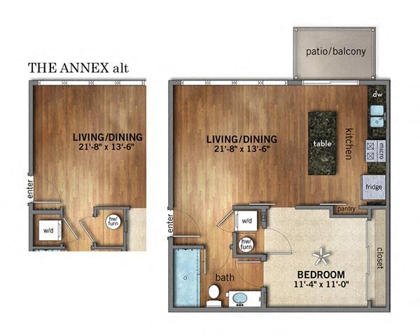 Modelo de apartamento: HavenDesde $1,4641 Dormitorio, 1 Baño, 629 sq ftDisponible Ahora![]()