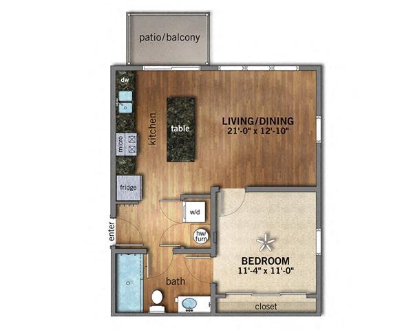 Haven - Plano 1 Unidad de apartamento: 353HMModelo de apartamento: Haven$1,4641 Dormitorio, 1 Baño, 629 sq ftDisponible AhoraQuarters