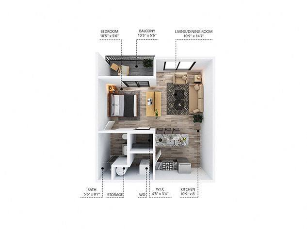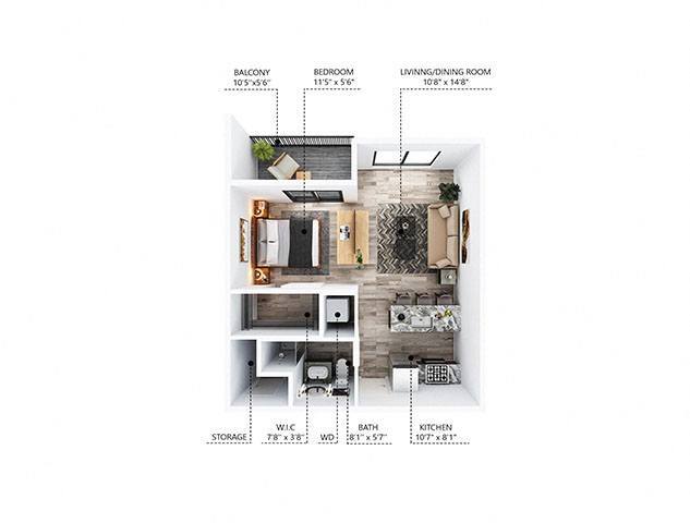 1 Dormitorio, 1 Baño, 717 pies²Disponible AhoraGalería del Modelo