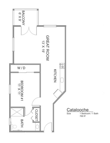 Modelo de apartamento: CataloocheLlame para Precios1 Dormitorio, 1 Baño, 785 sq ftNo Disponible![]()