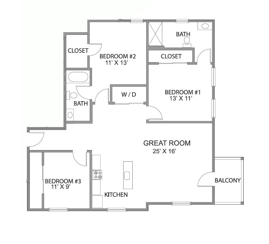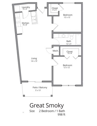 Modelo de apartamento: Great SmokyLlame para Precios2 Dormitorios, 1 Baño, 1012 sq ftNo Disponible![]()