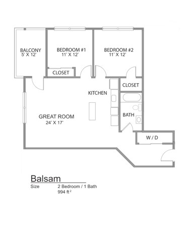 Balsam - Plano 5 Unidad de apartamento: 100-100-102Modelo de apartamento: BalsamLlame para Precios2 Dormitorios, 1 Baño, 1031 sq ftDisponible January 10, 2026Great Smoky 998