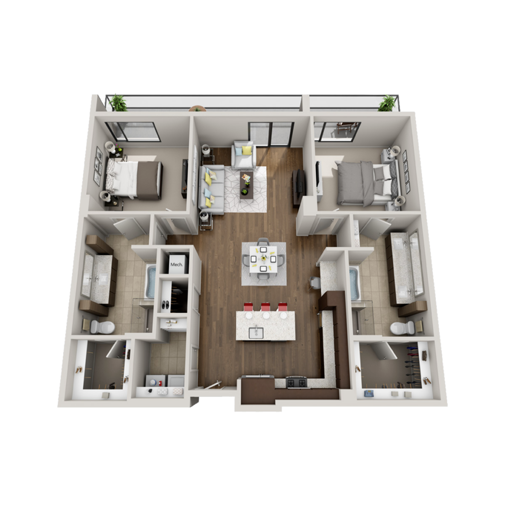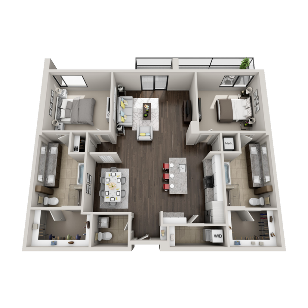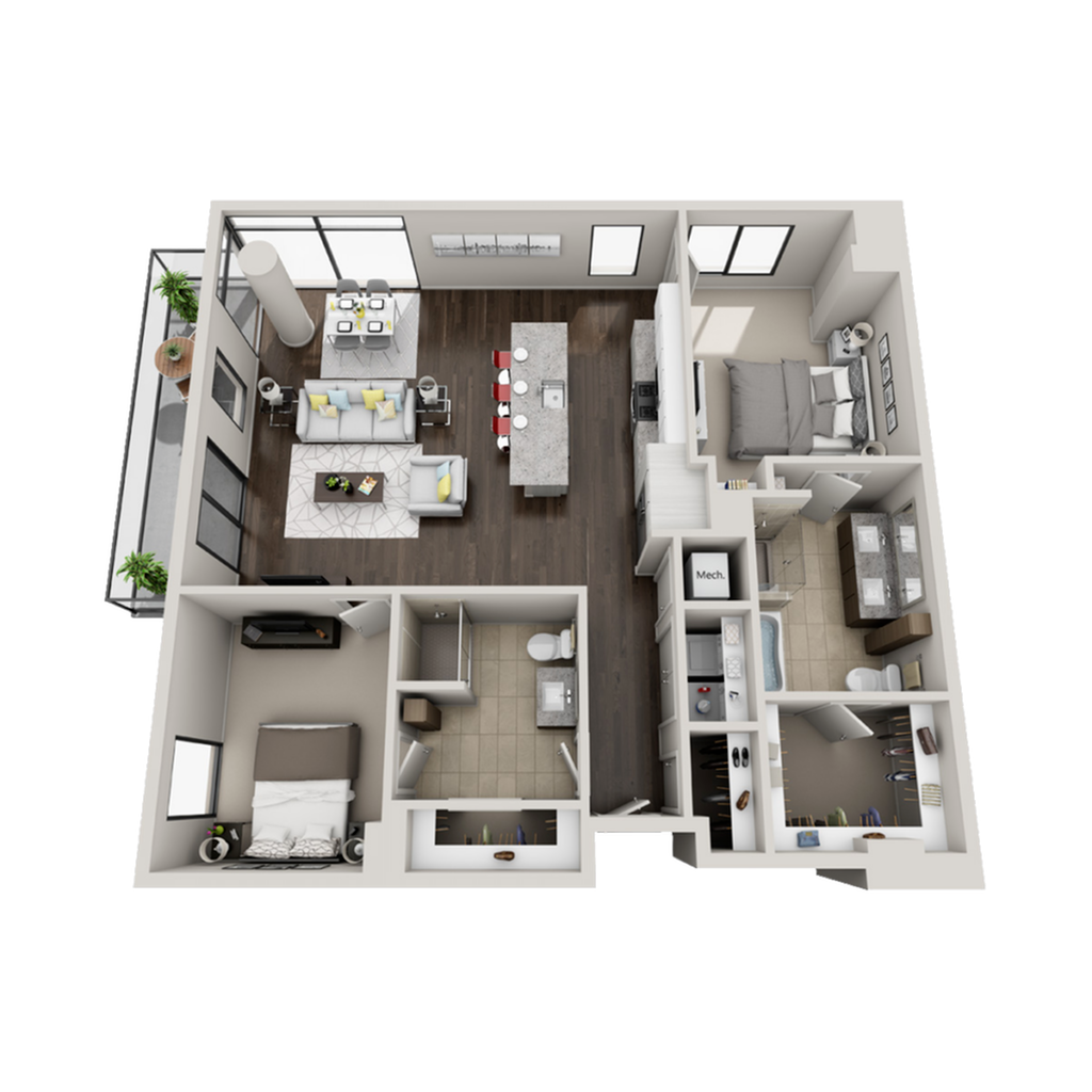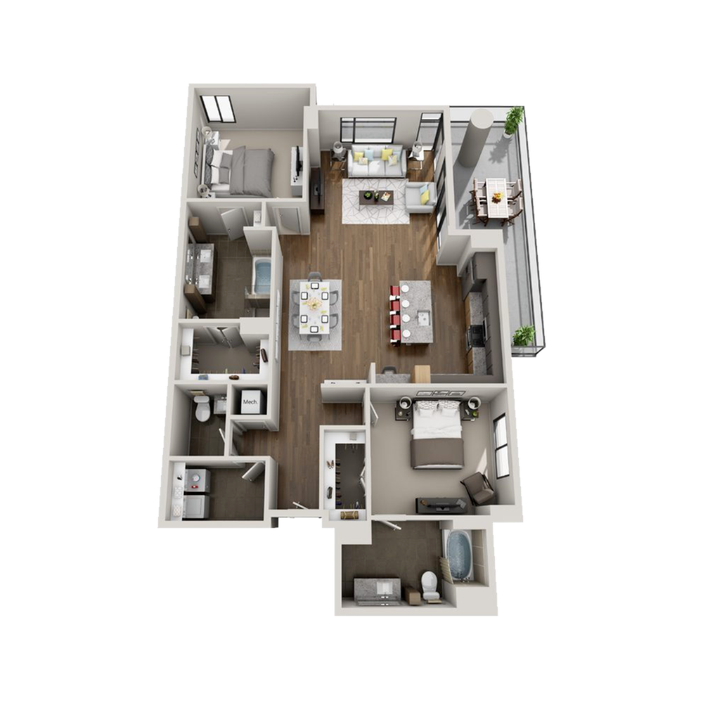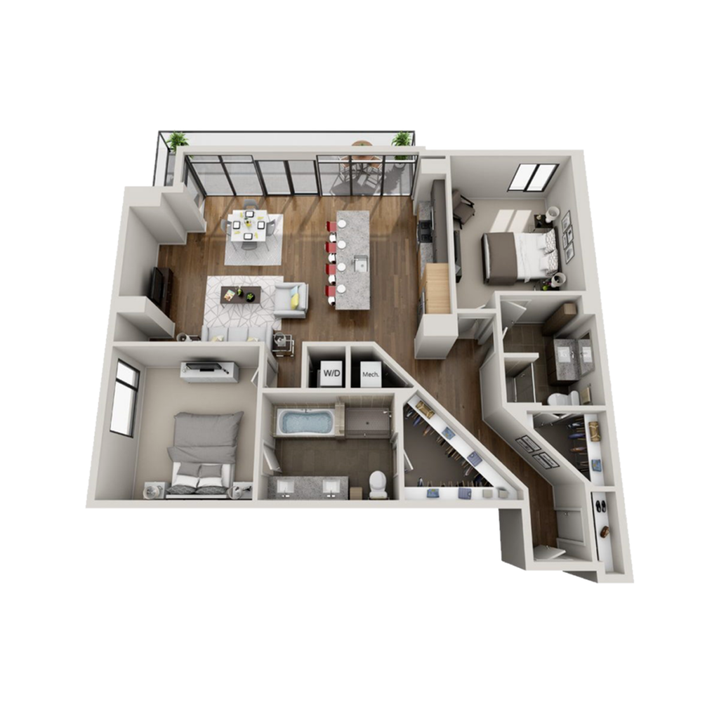 Modelo de apartamento: The MagnoliaLlame para Precios1 Dormitorio, 2 Baños, 1542 sq ftNo Disponible![]()
