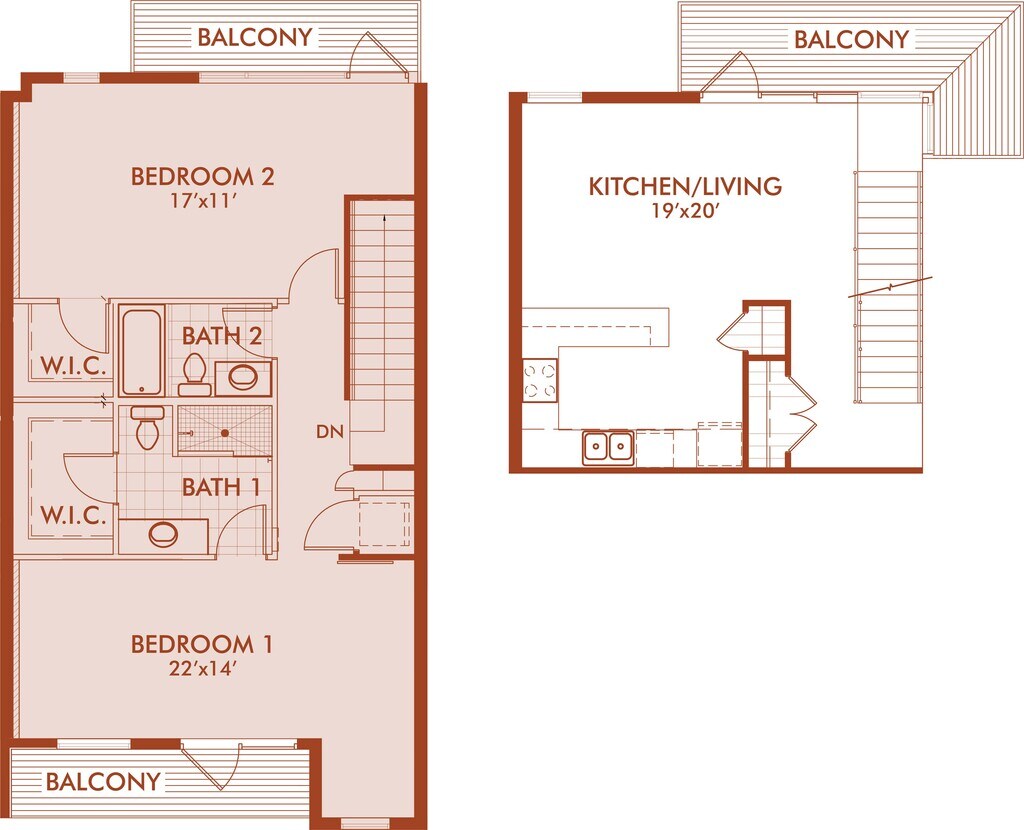 1 Dormitorio, 1 Baño, 720-781 pies²Disponible AhoraEl más grandeEsta opción tiene las unidades más grandes para este modeloGalería del Modelo