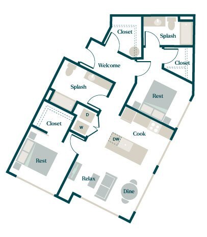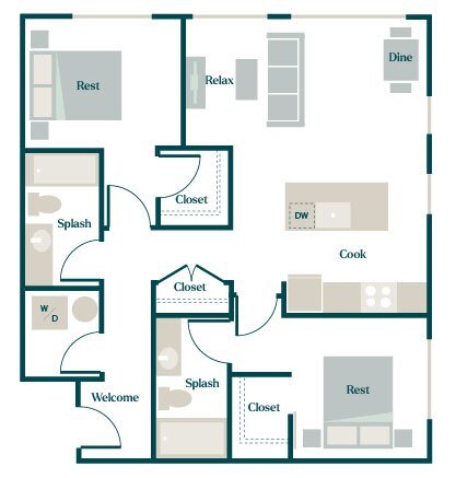 Modelo de apartamento: PalmDesde $1,6451 Dormitorio, 1 Baño, 630 sq ftDisponible Ahora![]()