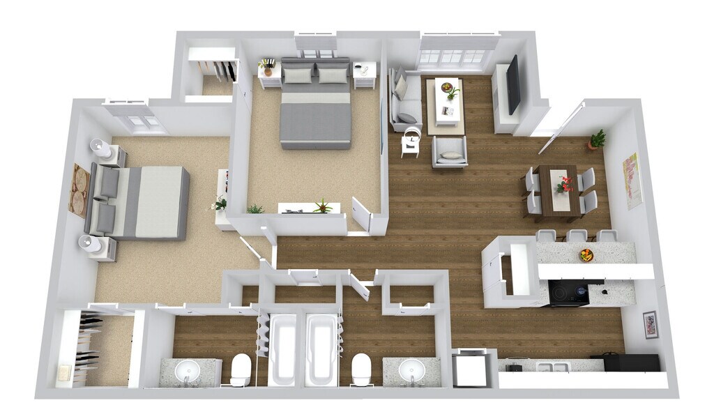 2 Dormitorios, 2 Baños, 1000 pies²Disponible AhoraGalería del Modelo