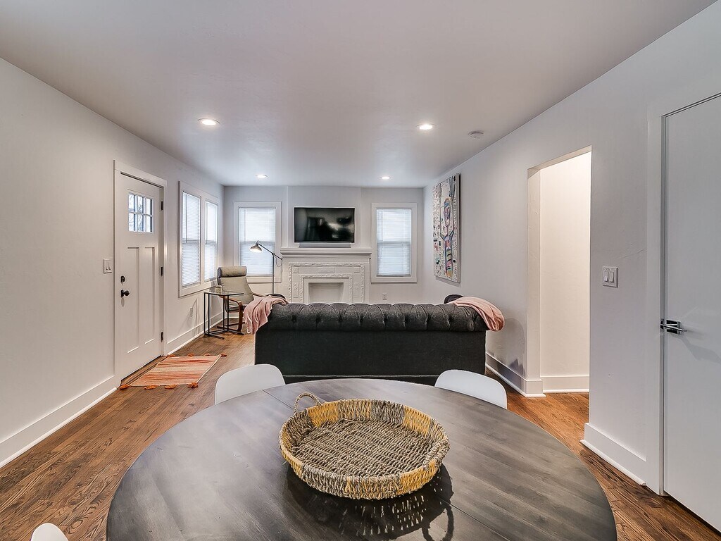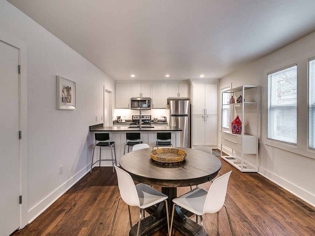 Completely remodeled and renovated in 2019, this old charismatic building has been brought back to life and has every modern necessity, including all new fixtures, hardwoods & tile, natural stone counters, electric range and microwave, in-unit washer/dryer and more. Located in the heart of the Plaza District, we are in walking or biking distance to Oklahoma City University! Wonderful shared/common area back yard, partially fenced.