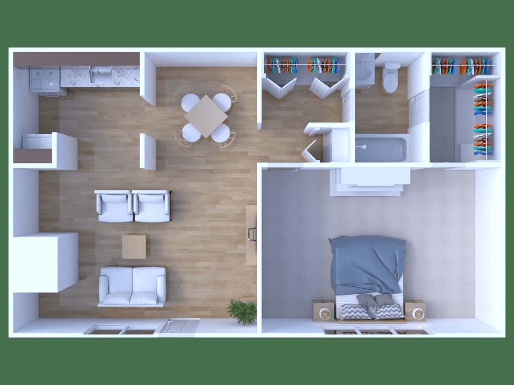 Modelo de apartamento: 1 Bed 1 Bath Garden$1,3031 Dormitorio, 1 Baño, 720 sq ftDisponible March 9, 2026![]()