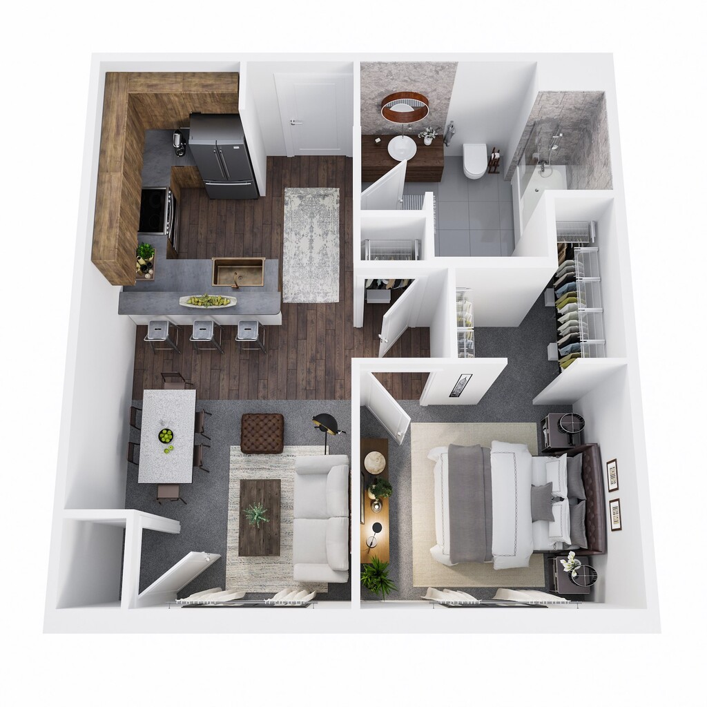 1 Dormitorio, 1 Baño, 603 pies²Galería del Modelo